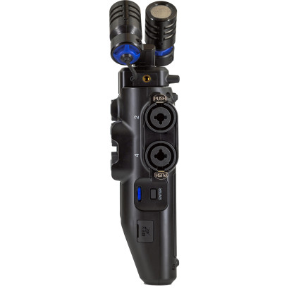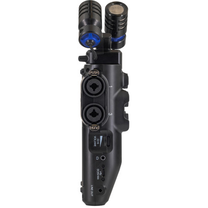 - livré avec capsule XYH-5e : 2 micros à condensateur 19.4mm en configuration X/Y à 90°, jusqu’à 140 dB SPL (-41 dB/Pa@1 kHz) + entrée latérale Mic/Line sur mini-jack 3,5mm supportant l’alimentation PiP pour les microphones lavalier