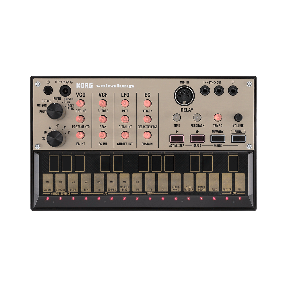 Le Volca Keys possède 27 touches, 3 oscillateurs, une section de filtre basée sur le miniKorg 700S, un délai, un séquenceur de boucles et un séquenceur de mouvements qui enregistre les éditions en temps réel.