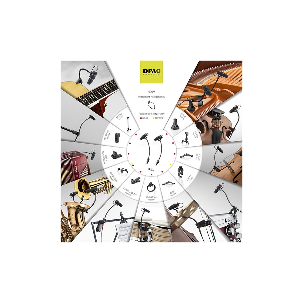 Ses multiples possibilités de montage et de positionnement combinées à une sonorité extrêmement naturelle, font véritablement du 4099 un micro sans égal pour les musiciens. Perpétuant l’héritage d’excellence acoustique de DPA, cette série de microphones assure la reproduction pure du son de votre instrument et permet de libérer toute l’étendue de votre interprétation. Après tout, l’important c’est l’émotion !