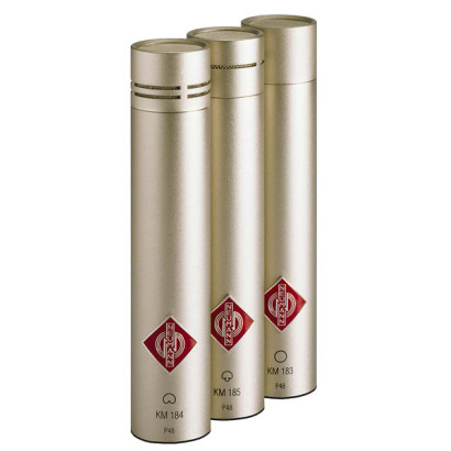 Les KM 183 et KM 184 sont les successeurs du KM éprouvée 83 et KM 84, qui ont été utilisés depuis les années septante à travers le monde avec un grand succès. Le KM 185 tours sur la série avec un microphone hypercardioïde. Le KM 183 est un transducteur de pression avec une bosse d'environ 7 dB à 10 kHz en champ libre. Dans le champ sonore diffus il a une réponse en fréquence plate. Le gradient de transducteurs de pression KM 184 et KM 185 présentent très lisses réponses en fréquence non seulement pour l'axe 0 °, mais aussi pour latérale (hors axe) incidence du son. En utilisation normale, il n'y a pas de coloration du son sur un angle de captation très ouvert. Bien que le KM 184 possède la même capsule que le KM 84, le microphone diffère légèrement sur ​​la réponse 0 ° de fréquence: Le KM 184 présente une légère accentuation à environ 9 kHz, une caractéristique qui a été introduit avec beaucoup de succès avec le KM 140. Le résultat est un équilibre tonal qui est plus fraîche et vive par rapport au KM 84, avec sa réponse en fréquence neutre dans cette bande. Cette différence a été obtenue avec juste un léger changement de ouverture arrière de la capsule, et est pas due à des résonances. Le KM 185, avec sa hypercardioïde, assure une atténuation de l'incidence sonore du côté ou à l'arrière d'environ 10 dB, avec une sensibilité minimale correspondant à un angle de 120 °.