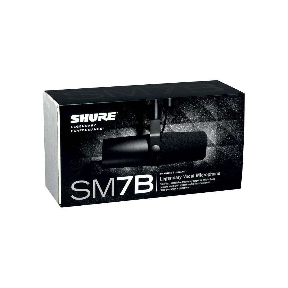 Véritable référence dans les studios de radio FM, le SM7B est un micro pour speaker dynamique à large capsule. Il est doté d'un excellent blindage l'immunisant contre les rayonnements électromagnétiques générés par les téléphones portables, les ordinateurs et les néons, par exemple. Il intègre des filtres correcteurs donnant ce son FM si typique. Il est tout aussi adapté comme micro pour instruments tels que les cuivres ou pour la reprise d'amplis guitare et basse. Il est livré avec bonnette anti-vent standard et bonnette A7WS pour la captation rapprochée.