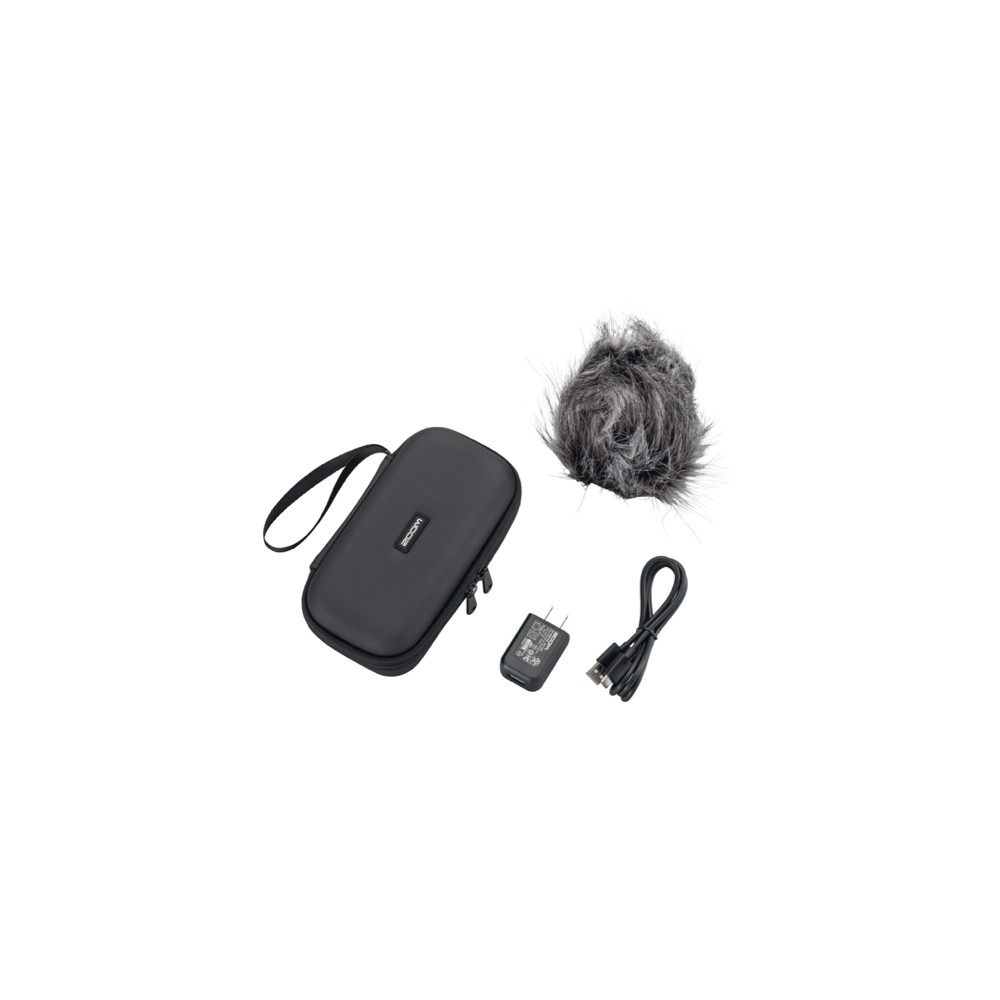 Composé de : 1x adaptateur secteur - 1x câble USB - 1x bonnette anti-vent à poils - 1x housse de transport