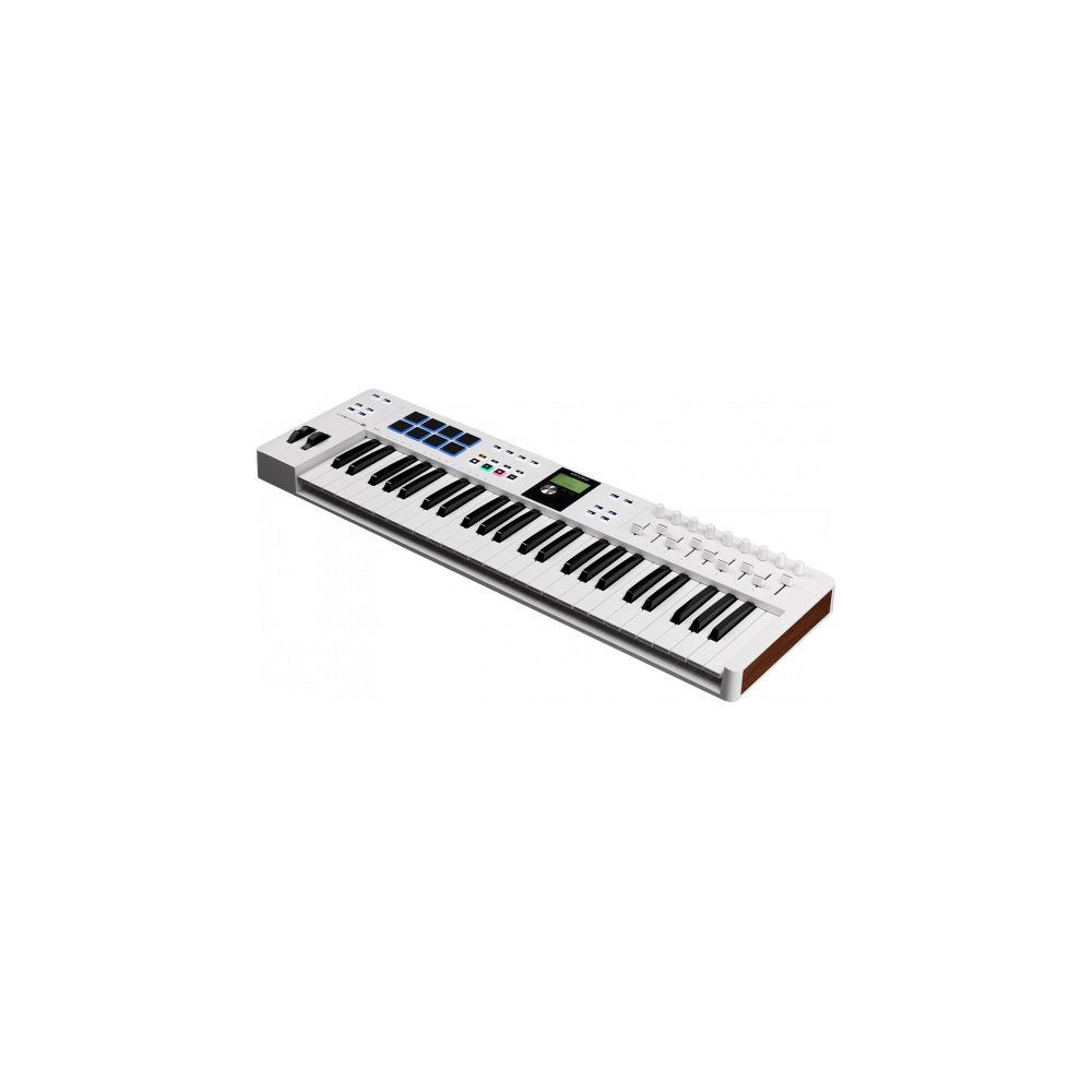 -Clavier maitre USB MIDI 49 touches dynamiques -Auto-alimenté par l'USB -Ecran LCD, boutons de navigation -8 pads RGB. -9 curseurs assignables -9 potentiomètres assignables -Molettes de Pitch Bend et modulation -Livré avec les logiciels Analog Lab, Ableton Live Lite et UVI Grand Piano Model D -Fonctionne à partir de Windows 7+ et MacOS 10.8, 4Go de RAM et processeur de 2GHz