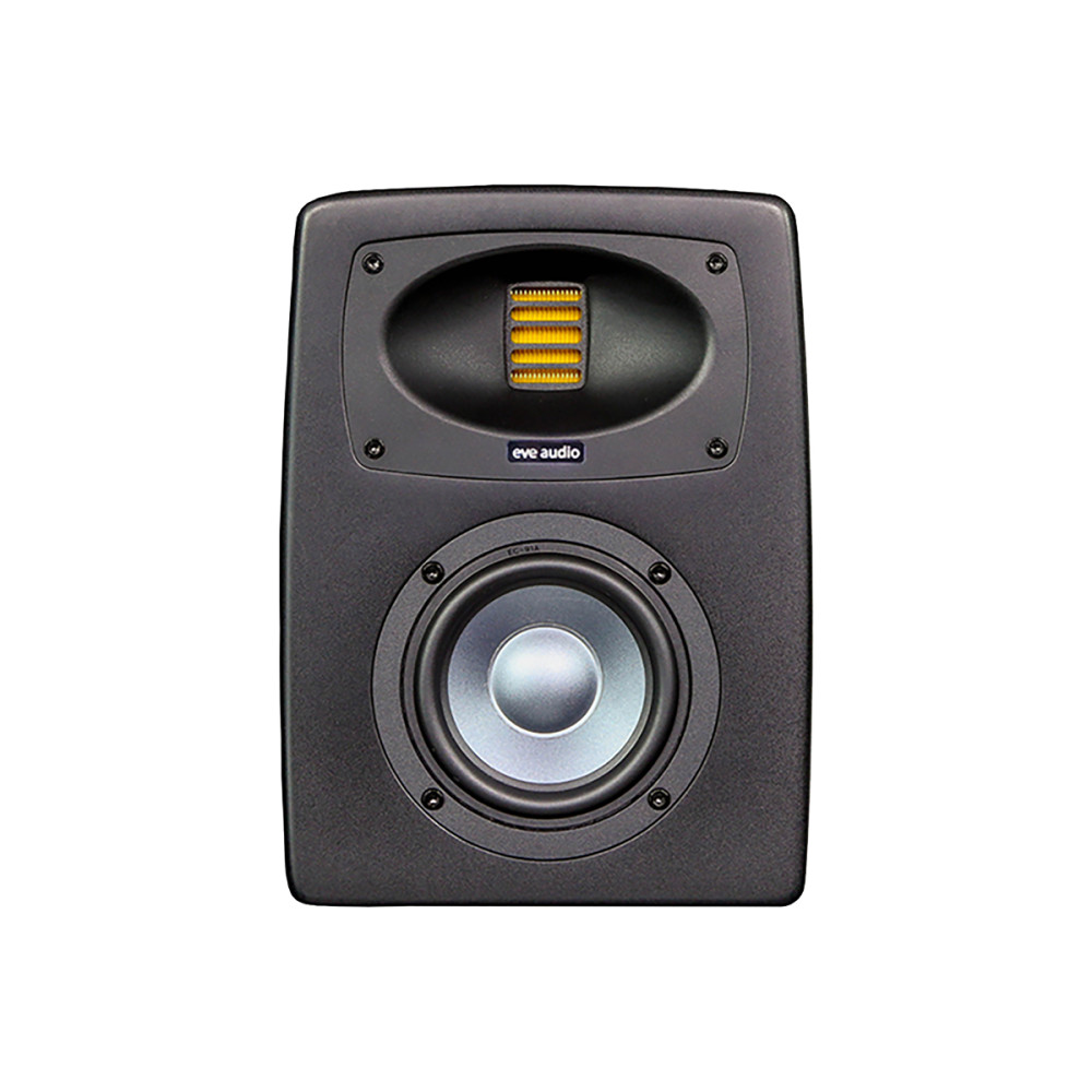 ● Logo "eve audio" multicolore en façade offrant un retour visuel instantané : état du système, détection de clipping, progression de mise à jour du firmware, etc.